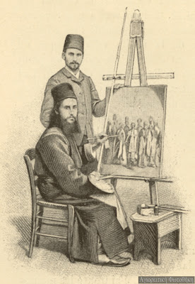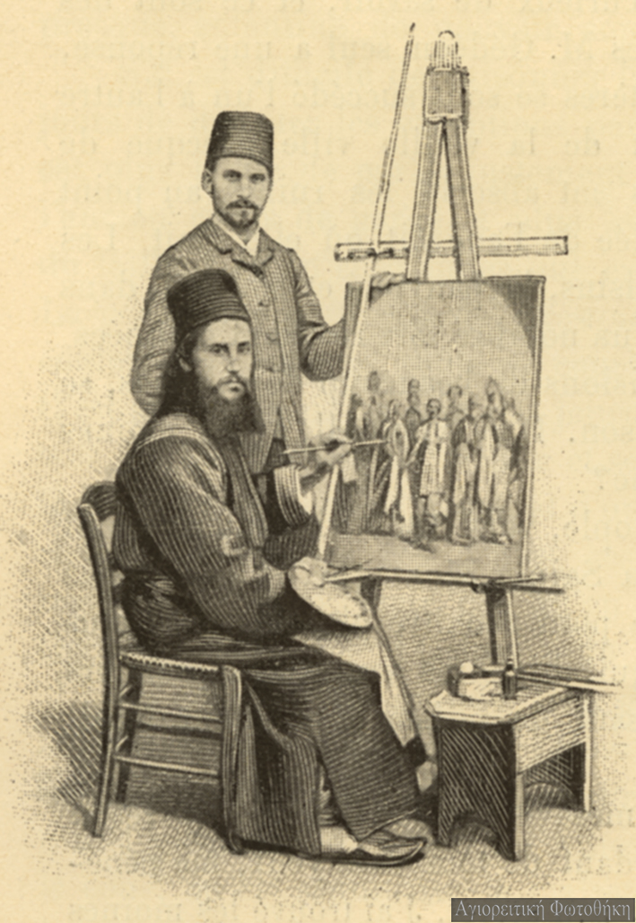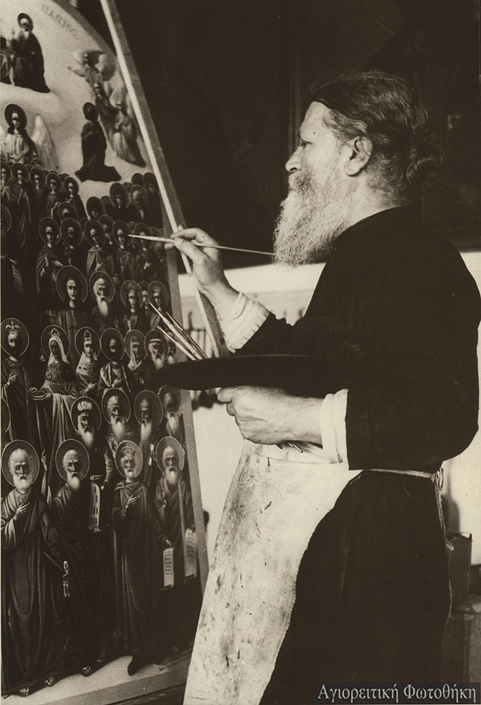 “Ιωάσαφ μοναχός Καισαρεύς, ζωγράφος, και η εξ αυτού ονομασθείσα συνοδία των Ιωασαφαίων” (Φωτογραφία: εργαστήριο Ιωασαφαίων, αρχές 20ού αι.)