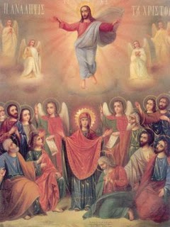 Τό ἔργον τοῦ Κυρίου μετά τήν Ἀνάληψίν Του εἰς τούς οὐρανούς συνέχισε καί συνεχίζει ἡ Ἐκκλησία. Αὐτή, μέ τήν δύναμιν πού τῆς ἔδωκεν ὁ Ἱδρυτής της, διδάσκει, θαυματουργεῖ, ἁγιάζει καί σώζει τούς πιστούς. Οἱ πιστοί εἶναι διά τῆς Ἐκκλησίας καί εἰς τήν Ἐκκλησίαν ἡνωμένοι μέ τόν Ἀρχηγόν των. Διά τήν Ἐκκλησίαν Του ὡμίλησεν ὁ Κύριος εἰς τούς Ἀποστόλους, ὅταν ἐνεφανίζετο εἰς αὐτούς ἐπί τεσσαράκοντα ἡμέρας μετά τήν Ἀνάστασίν Του. Ὑπεσχέθη εἰς αὐτούς τήν ἐπιφοίτησιν τοῦ Ἁγίου Πνεύματος, παρήγγειλε νά κηρύξουν τό Εὐαγγέλιον εἰς ὅλην τήν κτίσιν, νά διαλαλήσουν τήν Ἀνάστασίν Του καί νά καλέσουν τούς ἀνθρώπους νά μετανοήσουν διά τά ἁμαρτωλά των ἔργα. Ἐκεῖνοι πού θά ἐπίστευον, θά ἐγίνοντο μέ τό Ἅγιον Βάπτισμα μέλη τῆς Ἐκκλησίας. «Καί ταῦτα εἰπών βλεπόντων αὐτῶν ἐπήρθη (=ὑψώθη πρός τά ἐπάνω), καί νεφέλη ὑπέλαβεν αὐτόν ἀπό τῶν ὀφθαλμῶν αὐτῶν. Καί ὡς ἀτενίζοντες ἦσαν εἰς τόν οὐρανόν πορευομένου αὐτοῦ, καί ἰδού ἄνδρες δύο (δηλαδή ἄγγελοι) παρειστήκεισαν αὐτοῖς ἐν ἐσθῇτι λευκῇ, οἵ καί εἶπον· ἄνδρες Γαλιλαῖοι, τί ἑστήκατε ἐμβλέποντες εἰς τόν οὐρανόν; Οὗτος ὁ Ἰησοῦς ὁ ἀναληφθείς ἀφ᾿ ὑμῶν εἰς τόν οὐρανόν, οὕτως ἐλεύσεται (=θά ἔλθῃ κατά τόν ἴδιο τρόπον), ὅν τρόπον ἐθεάσασθε αὐτόν πορευόμενον εἰς τόν οὐρανόν. Τότε ὑπέστρεψαν εἰς Ἱερουσαλήμ ἀπό ὄρους τοῦ καλουμένου ἐλαιῶνος…» (Πράξ. 1, 9-12).