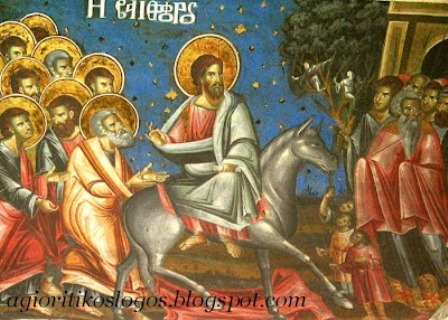 Μέ τή χάρη τοῦ Θεοῦ βρισκόμαστε στή ἀρχή τῆς Μεγάλης Ἑβδομάδος. Φθάνοντας ἡ πορεία μας πρός τό Πάσχα, στό ἀποκορύφωμά της, ἑορτάζουμε ἤδη τήν Κυριακή τῶν Βαΐων τήν θριαμβευτική εἴσοδο τοῦ Χριστοῦ στά Ἱεροσόλυμα, ὁπότε ὑποδεχόμαστε κι ἐμεῖς τόν σιωπηλό, προβληματισμένο καί κατά πάντα περίλυπο Ἰησοῦ, πού εἰσέρχεται στήν Ἁγία Πόλη.Στήν ὀρθόδοξη εἰκονογραφία τῆς ἑορτῆς τῆς Κυριακῆς τῶν Βαΐων, ἄν σταθοῦμε μπροστά στήν εἰκόνα, θά παρατηρήσουμε ὅτι τό πρόσωπο τοῦ Ἰησοῦ ἔχει μία περίσκεψη καί φαίνεται νά ἀπέχει ἀπό τά ὅσα συμβαίνουν γύρω του. Γι᾿ αὐτό καί σιωπᾶ⋅ δέν χαιρετᾶ⋅ δέν εὐλογεῖ⋅ δέν θαυματουργεῖ⋅ δέν προσέχει στά Ὠσσανά. Ὅλ᾿ αὐτά γνωρίζει ὅτι εἶναι τά σημάδια μιᾶς πορείας πού μέλλει νά διανύσει.